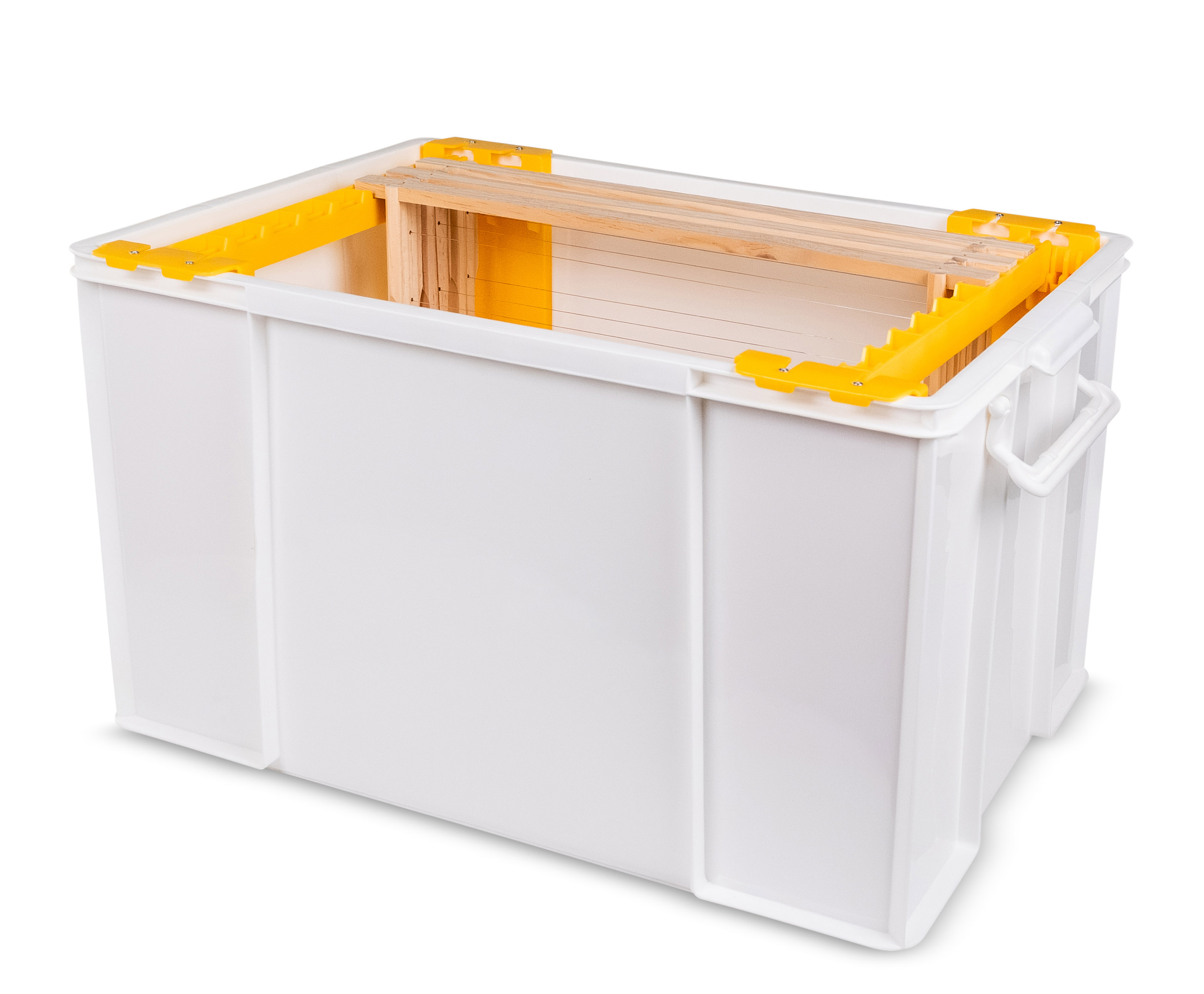 Die HOBBEE Lagerbox universal ist die ideale Lösung zur sicheren Aufbewahrung und zum Transport von Rähmchen. Dank des durchdachten Systems lassen sich die Auflageschienen und Halterungen individuell verstellen, sodass die Box optimal an verschiedene Rähmchenmaße angepasst werden kann.