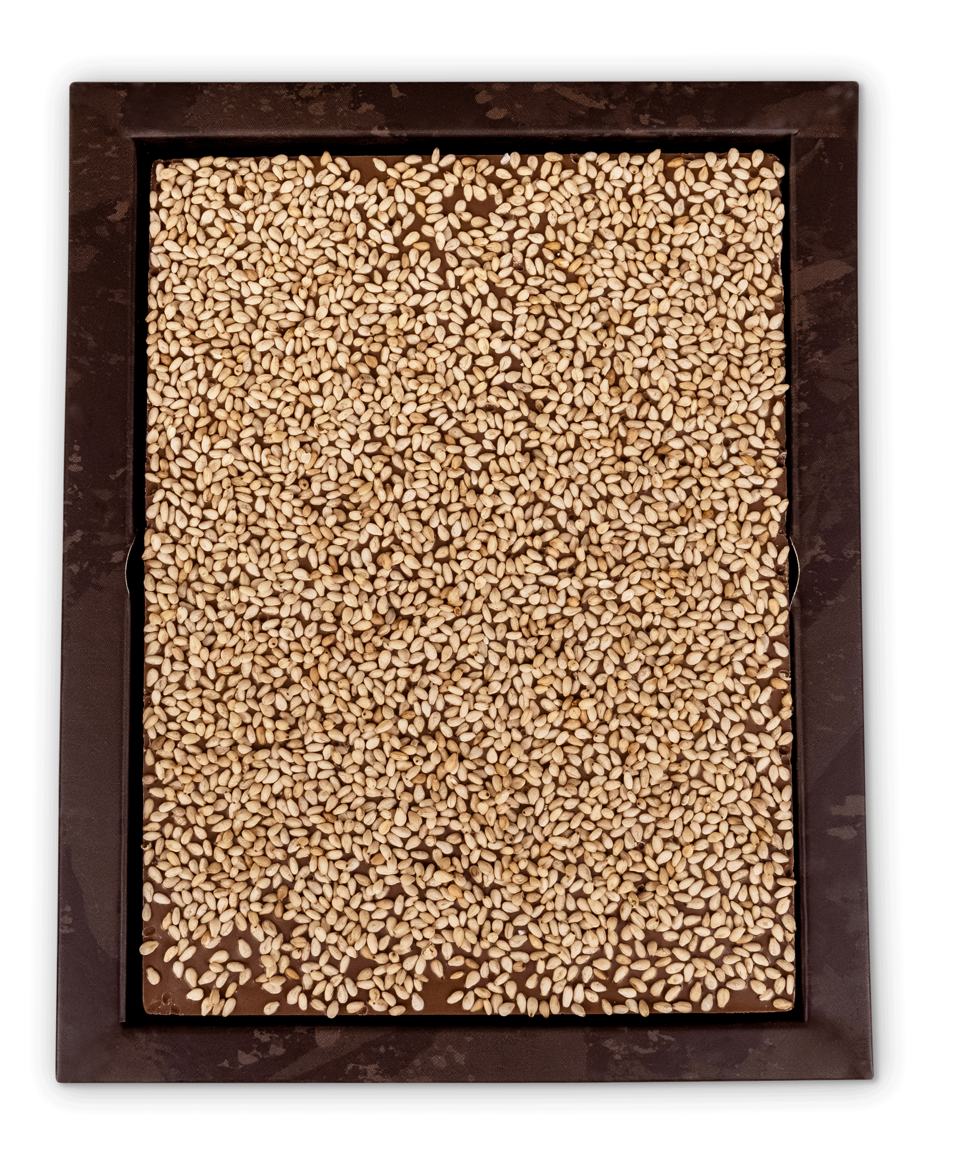 Die Honig Vollmilch-Schokolade mit Sesam vereint zartschmelzende Milchschokolade, feinen Honig und aromatischen, gerösteten Sesam zu einem besonderen Geschmackserlebnis.