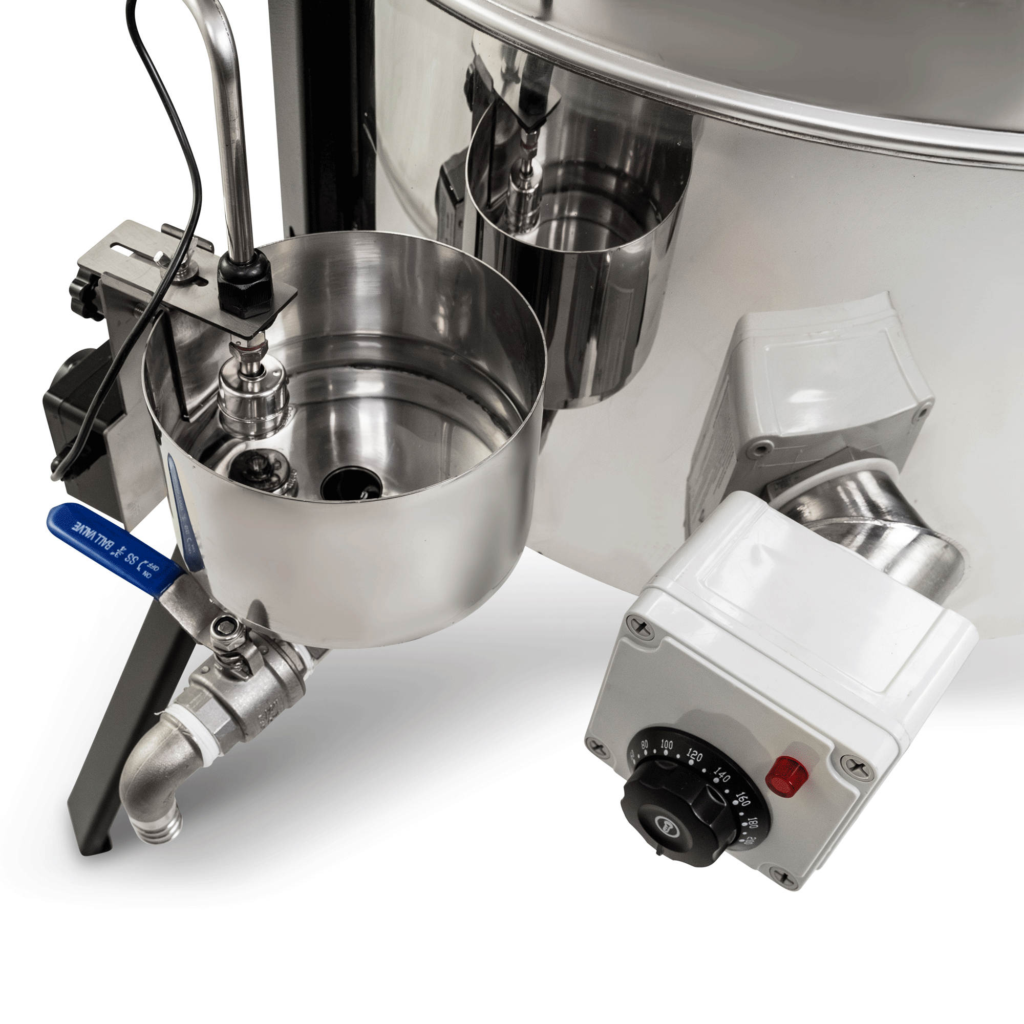 Alternativ kann die Zentrifuge auch ohne Heizeinheit gelieferte werden wenn der Dampf von externen Dampfgeräten z.B. Holzdampfmeistern erfolgen sollen. Hier bitten wir um Anfrage per Email.