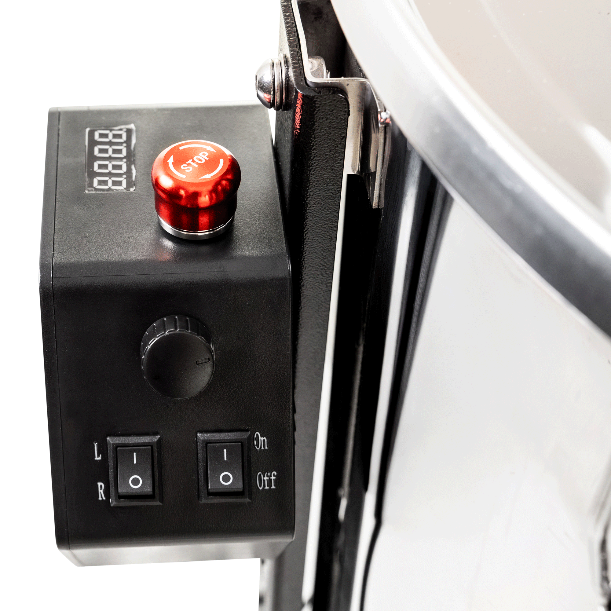 - Steuerung: Drehknopf, Anzeige Geschwindigkeit digital